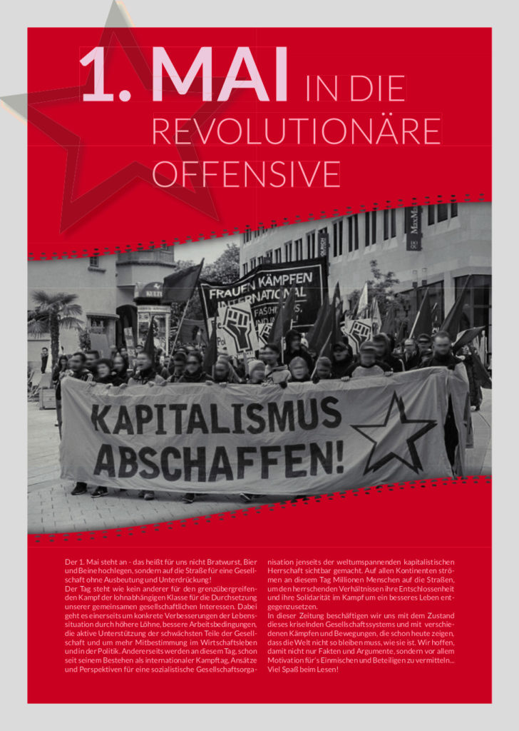 Wie auch in den vergangenen Jahren, veröffentlichen wir zum 1. Mai 2019 eine gemeinsame Zeitung, die sich nicht nur an den engen Kreis linker AktivistInnen richtet, sondern aktuelle Widersprüche dieses Gesellschaftssystems aufgreift, um revolutionäre Standpunkte, organisierten Widerstand und eine kommunistische Perspektive auch für breitere Kreise unserer Klasse verständlich und greifbar zu machen. Themen sind: