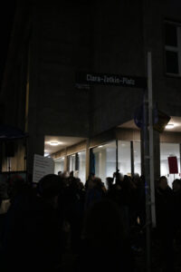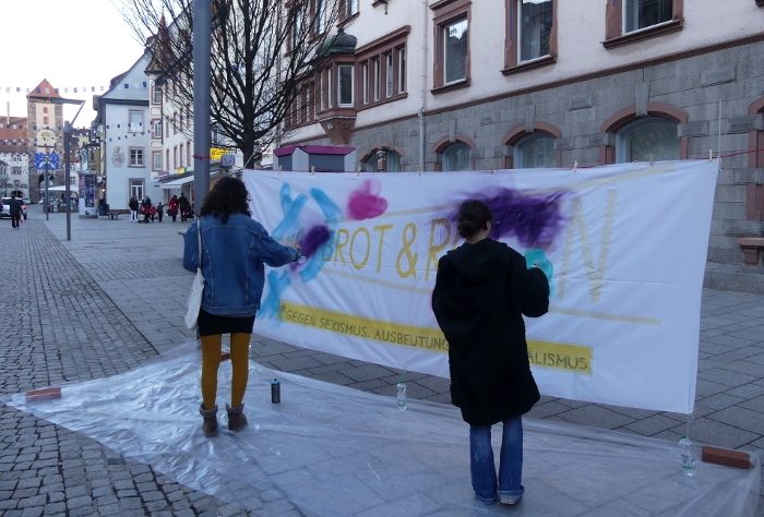 Diverse Aktionen rund um die Demo: Spontandemo und Theaterstück zu Frauenausbeutung in der Textilproduktion, Transpi-Aktion zum Anti-Abtreibungsparagraphen 219a, Platz-Umbenennung.
