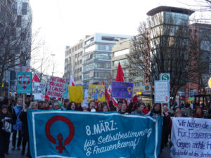Kundgebung und Demo unter dem Motto: „Für Selbstbestimmung und Frauenkampf“ mit insgesamt etwa 600 TeilnehmerInnen