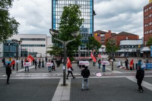Dezentrale Aktionen am privaten Vivantes Krankenhaus, am Lieferando-Büro und an der Amazon-Tower Baustelle.