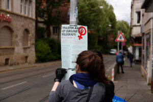 – Kreative, flexible und kämpferische Aktionsformen, die unsere Standpunkte und Perspektiven abseits der Kontrolle von Bullen und Ämtern auf die Straße bringen.