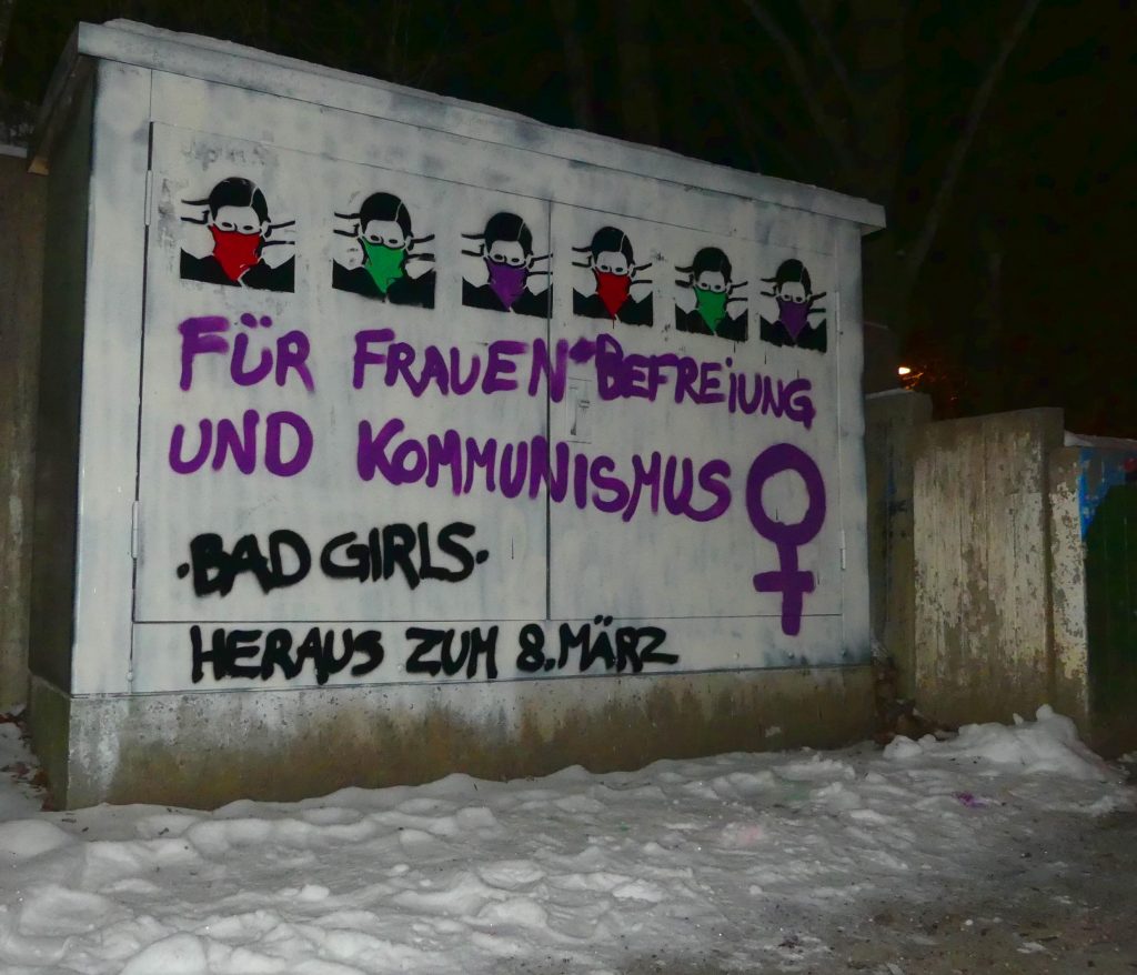 All diese Kämpfe sind möglich durch einen aktiven und kollektiven Frauen*kampf. Auch unter Krisen- und Pandemiebedingungen sind Frauen* aktiv und sagen: jetzt erst recht! Verantwortungsvoll und solidarisch müssen wir als linke und revolutionäre Bewegung den Aufbau der Strukturen und Aktionsfelder aufrechterhalten und vorantreiben. Anknüpfungspunkte und Brandherde gibt es genug um gegen die patriarchale-kapitalistische Unterdrückung zu kämpfen. Streiks in Kliniken und Kitas oder das Verweigern der Reproduktionsarbeit sind Möglichkeiten sich gegen die Ausbeutung im bezahlten und nicht-bezahlten reproduktiven Bereich zu wehren. Wir müssen und können jetzt gegen den sich verstärkenden Genderrollback ankämpfen. Stellen wir dem kollektivere Lebenskonzepte und aktive Kämpfe entgegen und ermutigen wir Frauen*, der Vereinzelung die Stirn zu bieten. Organisieren wir uns gegen das Patriarchat und den Kapitalismus!
