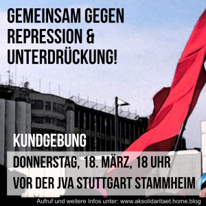 Beteiligt euch an den lokalen Aktivitäten zum Tag der politischen Gefangenen am 18. März! Besucht die Gefangenen und setzt ein klares Zeichen gegen die bürgerliche Klassenjustiz!