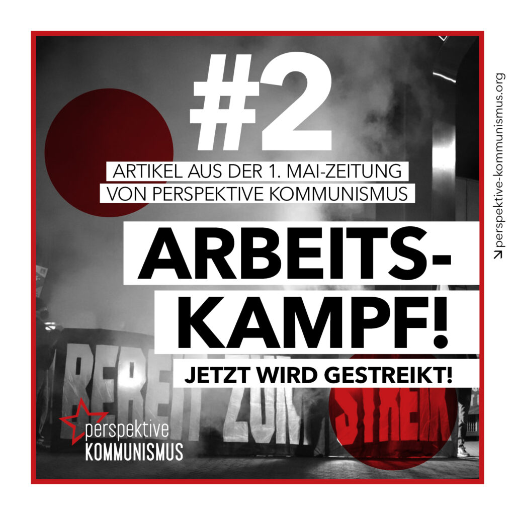 Wenn Arbeitskämpfe auch außerhalb der Betriebe und Einrichtungen sichtbar werden, wenn Streiks und Protest-Aktionen für Aufregung in Politik und Medien sor-gen, dann wird deutlich, dass es hier um mehr geht, als um Klärungsbedarf zwischen vermeintlichen „Sozialpartnern“. Es geht darum, wer über den Wert der Arbeitskraft, über die Bedingungen und die Perspektive der Lebensgrundlage von Lohnabhängigen entscheidet. Und es geht um die Frage der Durchsetzungskraft. Eigentümer:innen, wie Ritter, Schaeffler und Bezos haben bei Entscheidungen nur eines im Kopf: Den eigenen Besitz erhalten und am besten vergrößern – und das werden sie mit allen Mitteln versuchen durchzu-setzen. Arbeitskämpfe sind das erste und wichtigste Mittel, um uns dagegen zu verteidigen! Sie alleine werden die Eigentumsordnung zwar nicht umdrehen, aber sie sind die Basis für alle weitere Schritte. Arbeiter:innen und Beschäftigte, die sich organisieren, für ihre Interessen kämpfen und Druck von unten aufbauen, werden diejenigen sein, die einen Bruch mit dem Kapitalismus und den Aufbau einer anderen Wirtschaftsordnung überhaupt erst möglich machen: Eine Wirtschaft in den Händen derer, die sie am Laufen halten, um sie nach den Bedürfnissen der Mehrheit zu gestalten. Güter, Erzeugnisse und Leistungen, die ein langfristiges gesellschaftliches Leben für möglichst viele und auf höchstmöglichem Niveau ermöglichen. Genau das sollte doch eigentlich der Sinn und Zweck von Arbeit sein.