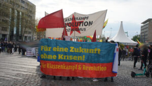 Auf der Abschlusskundgebung sprach schließlich eine Vertreterin der „Perspektive Kommunismus“ und ging auf die Notwendigkeit ein, sich in der Krise revolutionär zu organisieren, Aktionsräume zu öffnen und Schritte zu gehen, um eine wirkliche Gegenmacht gegen die kapitalistischen Verhältnisse aufzubauen. Im Anschluss an die Demonstration fand eine Kulturkundgebung mit verschiedenen Beiträgen von Initiativen und Musiker:innen, Workshops und Infoständen.