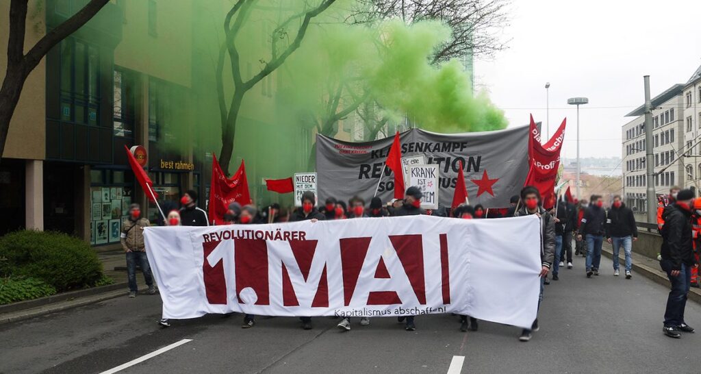 Es ist ein gutes Zeichen, dass in diesem Jahr in vielen Städten eigenständige revolutionäre 1. Mai Demonstrationen stattfanden, in einigen davon das erste mal seit langer Zeit. Überschattet wurde der Tag teilweise von Bildern brutaler Polizeigewalt aus Berlin und Frankfurt und von der Verunmöglichung jeder Aktion in Hamburg. Auch die Herrschenden sind sich der Krise des kapitalistischen Systems bewusst und während sie in einigen Städten Deeskalationsstrategien fahren, schlagen sie in anderen mit der vollen Macht des hochgerüsteten Polizeiapparates zu. Für uns muss das ein Ansporn sein. Nicht mit weniger, sondern mit mehr Organisation werden wir die Repression zurückschlagen.