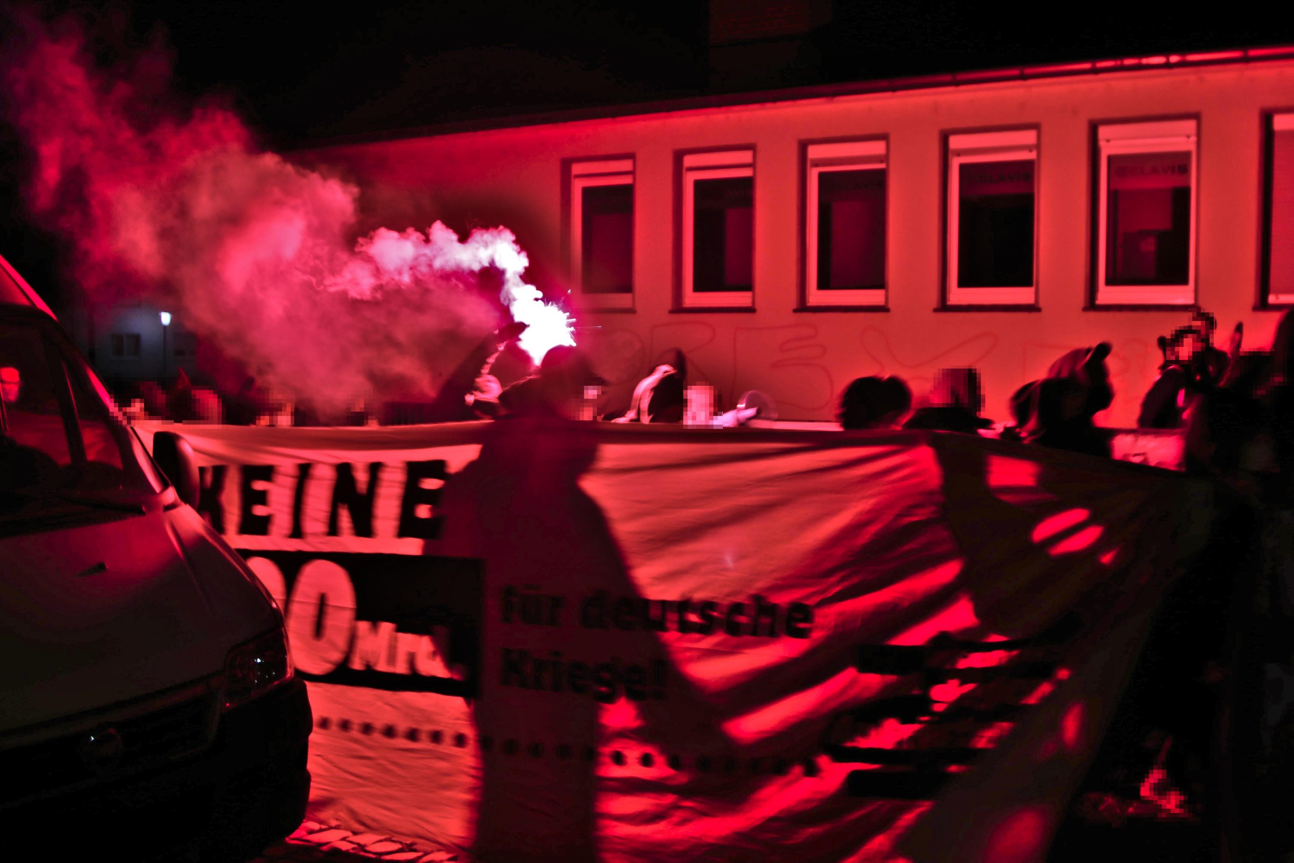 Bereits in den Tagen zuvor wurden vor verschiedenen Rüstungswerken in Kassel Flyer an die Arbeiter:innen verteilt, in denen klargestellt wurde, dass die Aktionen sich nicht gegen sie richten, sondern gegen die deutsche Kriegsindustrie – ihre Bosse – die sich an Kriegen weltweit und durch die Ausbeutung ihrer Arbeitskraft eine goldene Nase verdient. Nicht diejenigen, die ihre Arbeitskraft für ihr tägliches Brot verkaufen müssen sind verantwortlich für den deutschen Imperialismus und das Leid, das er auf der Ganzen Welt verursacht, sondern die Kapitalist:innen in deren Interesse Waffen exportiert und Kriege geführt werden.
