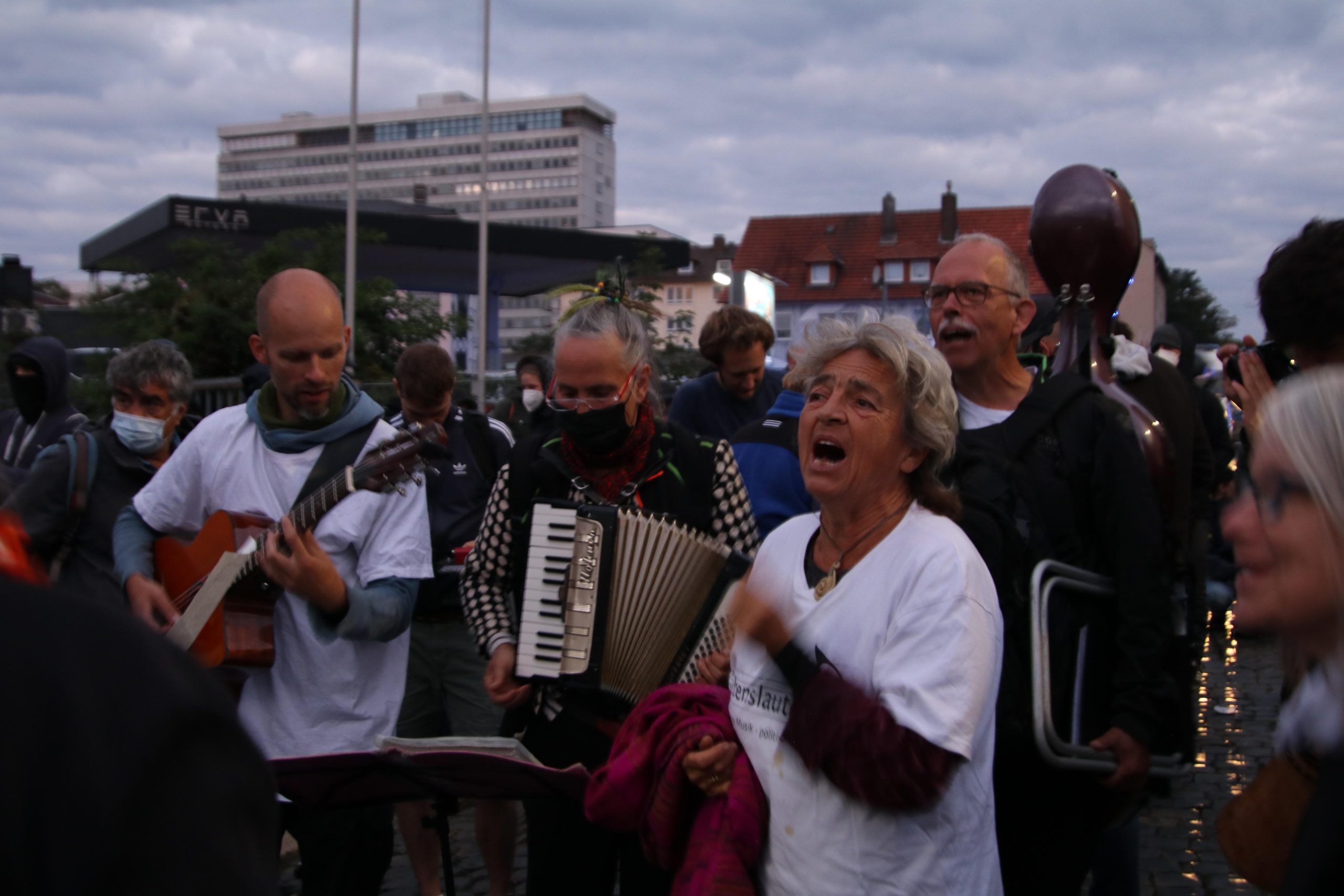 Am Samstag Vormittag waren wir dann gemeinsam mit Vertreter:innen der „Interventionistischen Linken“ sowie „Gemeinsam Kämpfen“ und „Initiative demokratischer Konförderalismus“ auf der zentralen Podiumsdiskussion zu revolutionären Perspektiven vertreten. Die Möglichkeit in der Bewegung über die Frage des revolutionären Subjekts, über die aktuelle Bedeutung eines Klassenstandpunkts, über das Verhältnis zwischen revolutionären Kernen, gesellschaftlichen Organisierungen, sozialen Bewegungen und politischen Widerständen zu diskutieren, dabei die Widersprüche verschiedener Ansätze sichtbar zu machen, begreifen wir als sehr wertvoll – auch wenn alle Beteiligten durch die zwangsläufigen zeitlichen und inhaltlichen Beschränkungen dabei sicherlich an einigen Punkten nur an der Oberfläche kratzen konnten. An dieser Stelle nocheinmal ein großer Dank an die Organisator:innen! Gerne knüpfen wir auch in Zukunft an diese Form der Debatte an.
