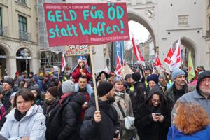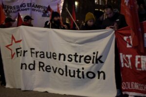 Streikdemo +++ Kundgebung dem iranischen Konsulat +++ Anlaufpunkt für solidarische Mittagspause +++ Revolutionäre Demo unter dem Motto „Kämpft für Brot, Arbeit und Frieden. Heraus zum Frauenkampftag!“ mit über 250 Teilnehmer:innen