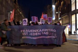 Demo unter dem Motto „Wut zu Widerstand – Frauen streiken, kämpfen, leben!“ mit 50 Teilnehmer:innen +++ klassenkämpferischer und internationalistischer Schwerpunkt +++ Feministische Stadtverschönerung