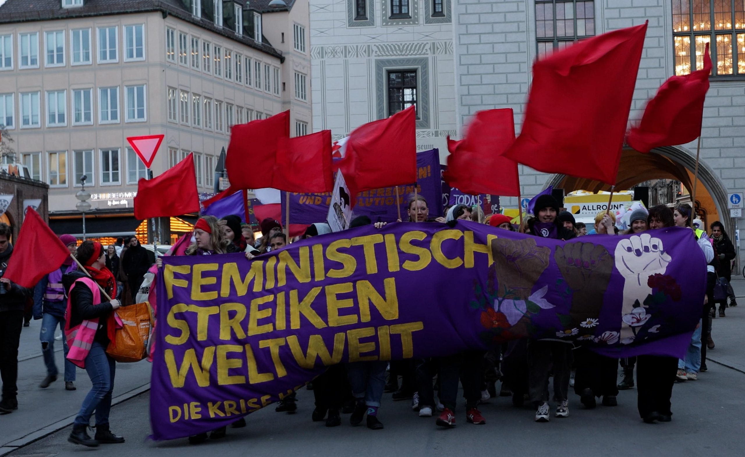 Feministische Mittagspause im Gewerkschaftshaus +++ Stadtverschönerung +++ 7000 auf feministischer Streik-Kundgebung +++ Tausende auf direkt anschließender Demo unter dem Motto „Die Krisen stecken im System. Feministisch streiken weltweit!“ +++ Internationalistische Abschlusskundgebung