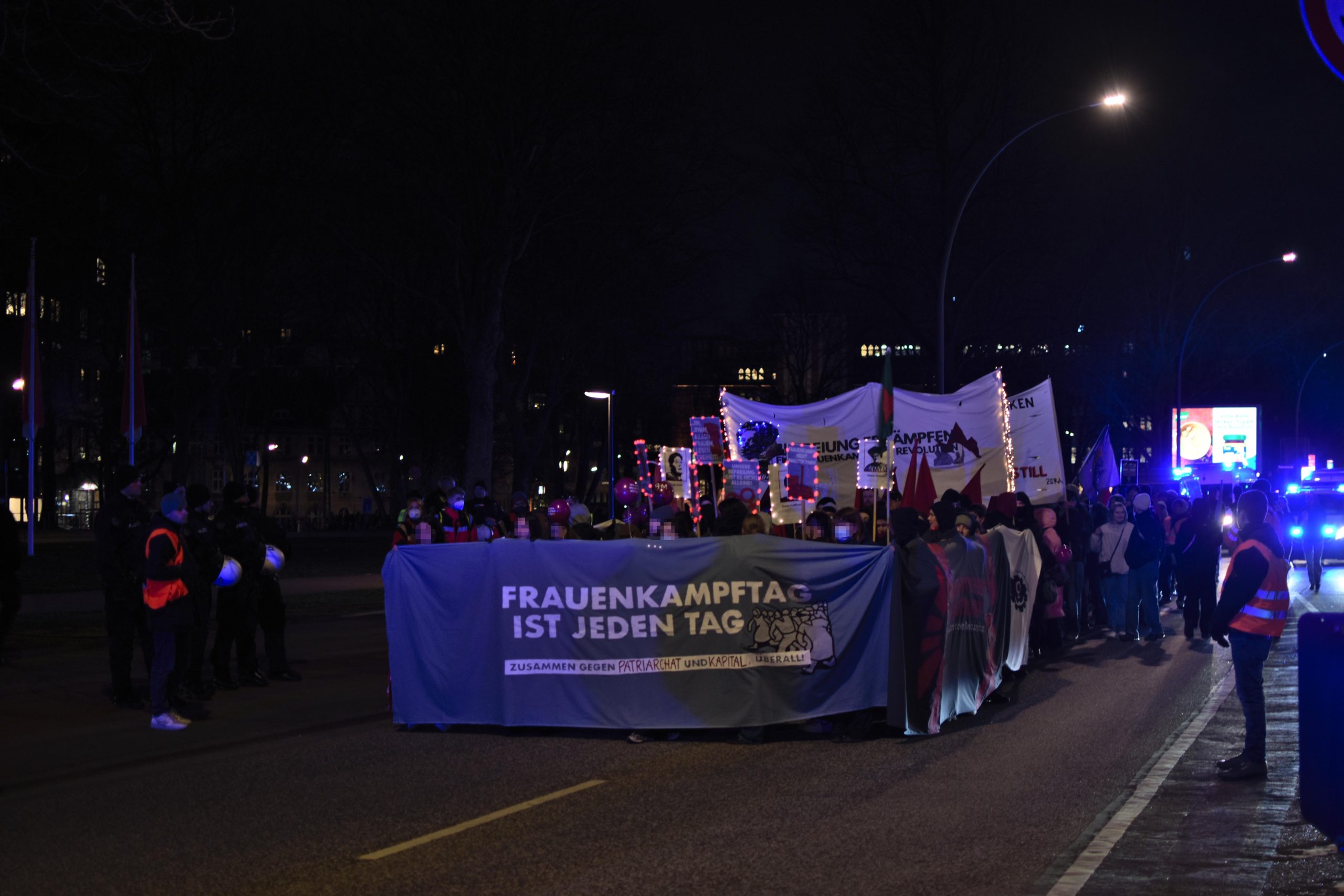Demo unter dem Motto „Wut zu Widerstand – Frauen streiken, kämpfen, leben!“ mit 50 Teilnehmer:innen +++ klassenkämpferischer und internationalistischer Schwerpunkt +++ Feministische Stadtverschönerung