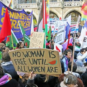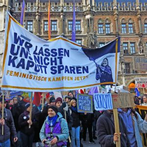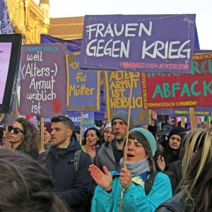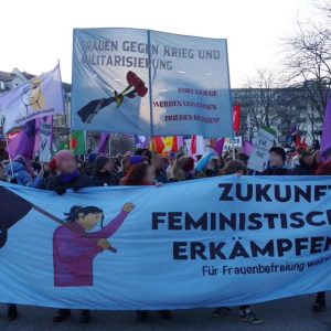 In München beteiligten sich 7000 Menschen an einer großen und kämpferischen 8. März Demo in der Innenstadt. Thematisiert wurden feministische Streiks und die notwendige Frauenorganisierung gegen Patriarchat und kapitalistische Ausbeutung. Weitere Themen waren die Forderungen für ein Ende imperialistischer Kriege, klare Kante gegen Waffenlieferungen deutscher Rüstungskonzerne und Geld für öffentliche Daseinsfürsorge statt für Bundeswehr und Aufrüstung. Nicht allen gefiel der Schulterschluss von Feminist:innen, Internationalist:innen und Gewerkschafter:innen. Am Rande versuchte eine Gruppe rechter Zionist:innen zu stören und beleidigte die Teilnehmer:innen sexistisch und rassistisch. Die Störaktion konnte aber erfolgreich abgeschirmt werden. Bericht & Fotos: frauentreffen_muc