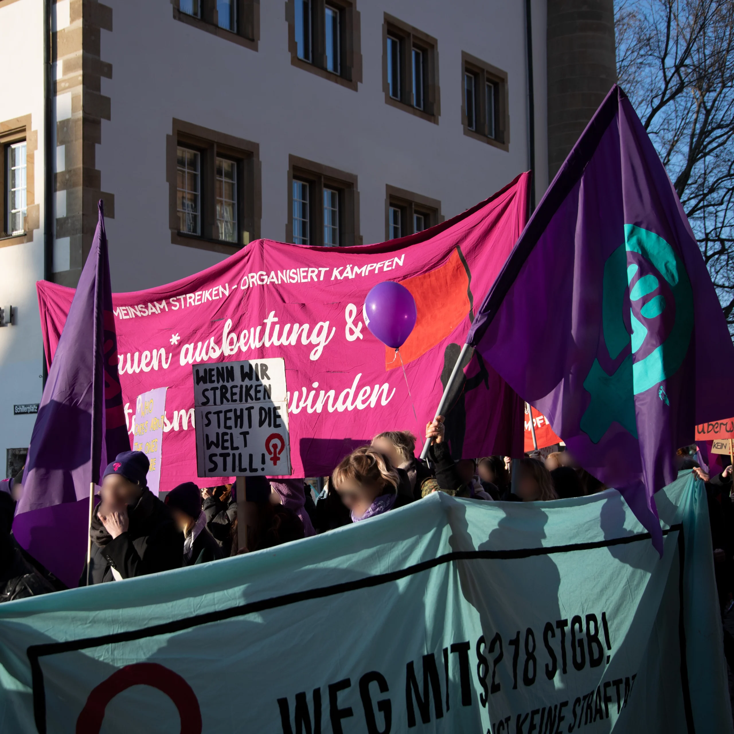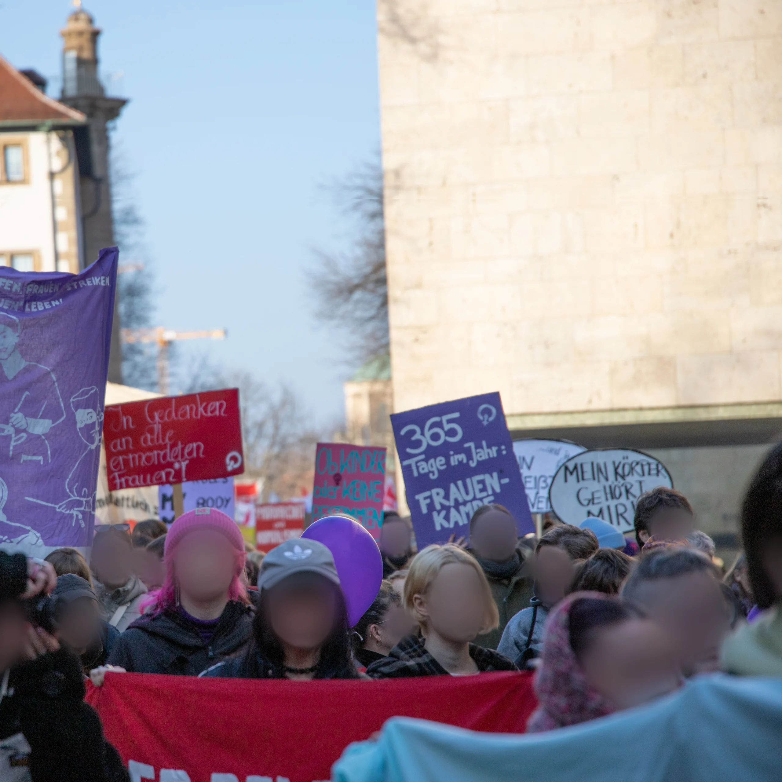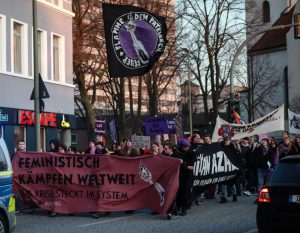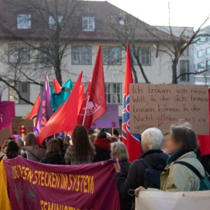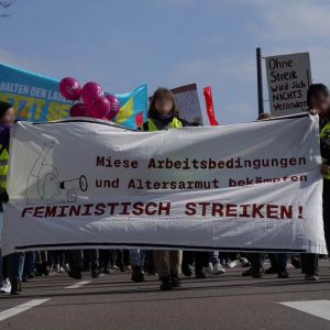 Mit 3500 Teilnehmer:innen zog die 8. März Demo durch die Stuttgarter Innenstadt. Erneut gab es eine Verknüpfung vom feministischen Kampf mit aktuellen Arbeitskämpfen, so waren Beschäftigte aus dem Einzel- und Großhandel, sowie aus den Kommunen der Landkreise zum Streik aufgerufen.