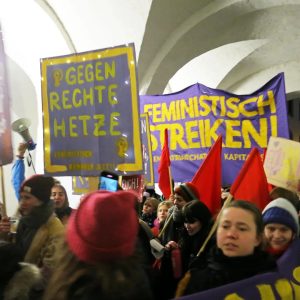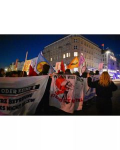 Während der Demo gab es eine Aktion an der Galeria Karstadt Kaufhof Filiale, wo mit Schildern die Enteignung von René Benko gefordert wurde, dem milliardenschweren Besitzer. Für das Unternehmen wurde inzwischen die dritte Insolvenz beantragt. In Stuttgart stehen 17 Frauen aufgrund der Insolvenz vor dem Nichts. Darüber hinaus gab es unter anderen Reden zum Rechtsruck, zur Situation in Südamerika und speziell in Chile, gemeinsames Lieder singen und im Nachklang an die Demo ein Bannerdrop in der Innenstadt um sich mit feministischen und revolutionären Bewegungen in der ganzen Welt zu solidarisieren die für Frauenbefreiung und einen Bruch mit dem Kapitalismus kämpfen. Bericht & Fotos: Aktionsbündnis 8. März