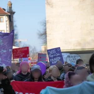 Bereits im Vorfeld des 8. März gab es in Karlsruhe eine nächtliche Frauensponti mit Pyro unter dem Motto „Frauen gegen Krieg & Repression. Am 8. März selbst gab es eine solidarische Beteiligung am Streiktag im Handel mit Grußwort des feministischen Frauentreffen bei der Streikdemo. Am Nachmittag fand dann die Bündnis-Demonstration statt, an der sich rund 1000 Menschen beteiligten. Redebeiträge gab es vom Migrant:innenverein, Frauen aus dem Iran und von der Initiative Krankenhaus statt Fabrik, welche die miserable gesundheitliche Lage für Frauen in Gaza thematisierte. Das Offene feministische Treffen thematisierte in ihrem Redebeitrag die enge Verstrickung von Patriarchat und Kapitalismus und die Notwendigkeit der feministischen Organisierung. Ergänzt wurde die Demo auch von einer Aktion zu Femiziden. Bericht & Fotos: oft_kalrsruhe