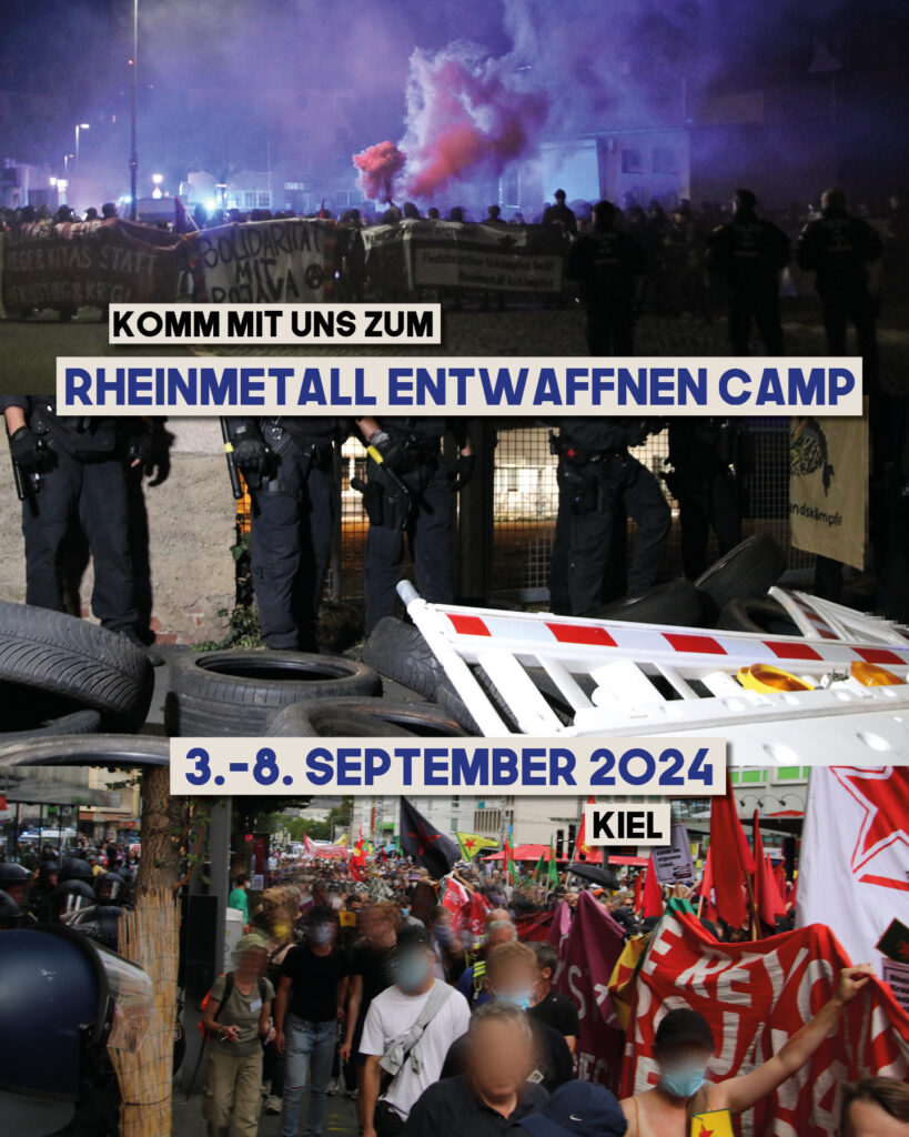 Gemeinsam mit anderen Strukturen der revolutionären Linken rufen wir zur Beteiligung an den Rheinmetall-Entwaffnen Aktionstagen vom 3.-8- September in Kiel auf. Hier der gemeinsame Aufruf und die bisherigen Unterstützer:innen.
