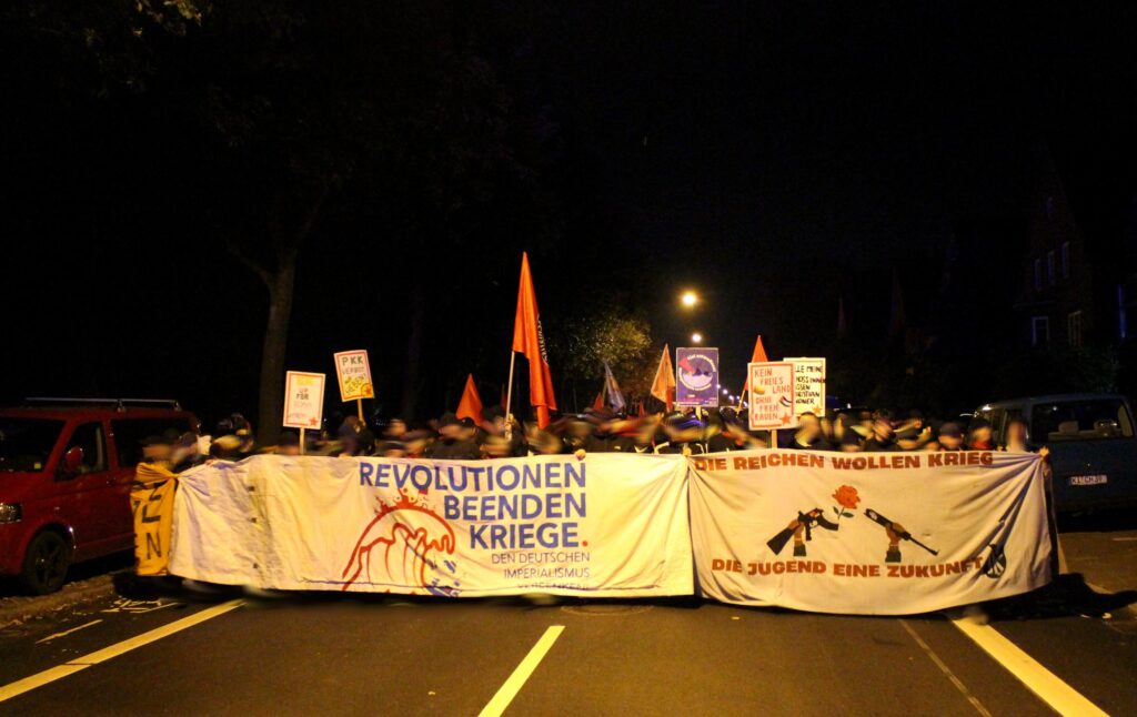 Die gemeinsame Positionierung für eine friedliche Zukunft ohne Ausbeutung und imperialistische Kriege wurde auf dem Camp, in den Aktionen und der abschließenden Demo spürbar und in kollektives Handeln umgesetzt. Solche Momente sind gerade in einer Zeit, in der sich linke, revolutionäre Bewegungen in der Defensive befinden, während die kapitalistische Krise weiter an Fahrt aufnimmt, wertvoll. Mit diesen Eindrücken und Erfahrungen im Rücken gilt es nun weiter Ansätze für Protest und Widerstand gegen den Kriegskurs des deutschen Imperialismus zu suchen und zu erproben – bundesweit und dezentral, in den kleinen und größeren Städten.
