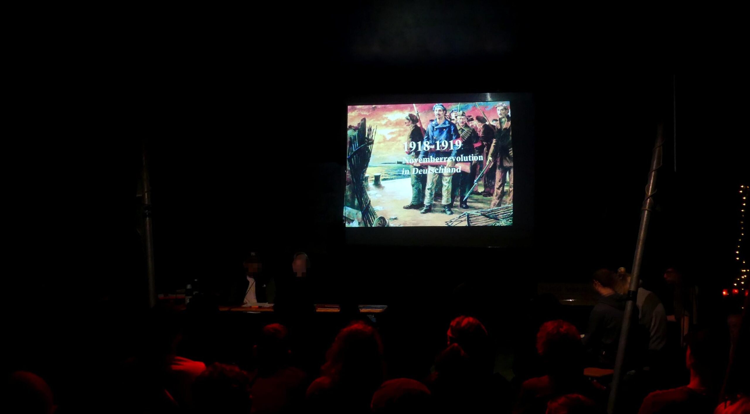 Dabei war das Barrio kein Camp im Camp: Als Perspektive Kommunismus waren wir, wie auch auch andere Strukturen des Barrios, Teil des RME-Bündnisses und aktive Akteur:in auf verschiedenen Ebenen der Bündnisarbeit. Aufgaben das Camp-Leben betreffend wie Auf- und Abbau, organisatorische Dinge, usw. gehören genauso zum Gelingen einer Protestwoche, wie die gemeinsame Blockade- und Demovorbereitung. Unsere hauptsächlichen inhaltlichen Beiträge vor Ort waren eine Veranstaltungen zum Kieler Matrosenaufstand und der Novemberrevolution zusammen mit dem Roten Kollektiv Kiel, eine Veranstaltung zu unserem Verständnis von proletarischem Internationalismus, sowie die Teilnahme am Abschluss-Podium.