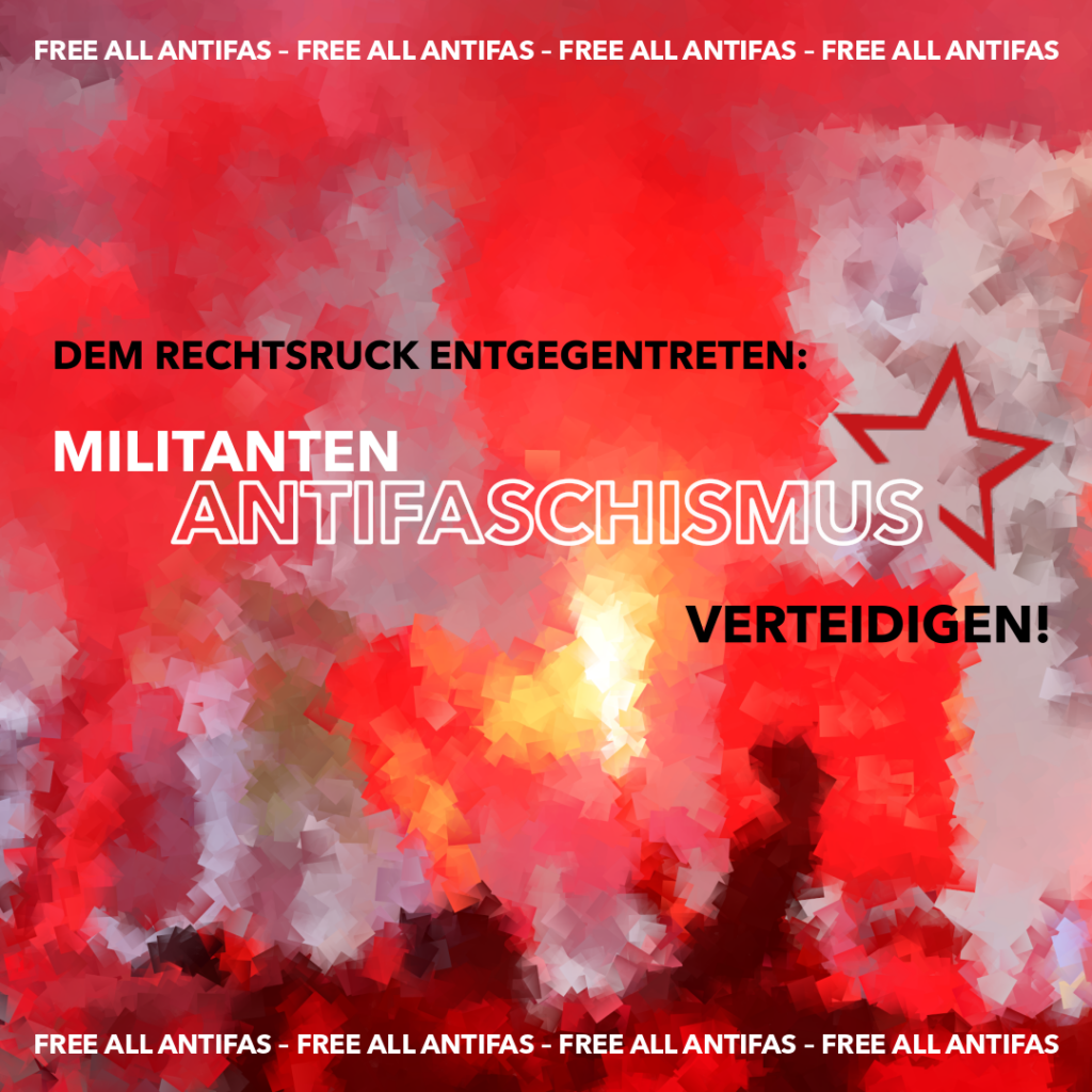 Im Rahmen der aktuellen Repression bedeutet das, die Betroffene nicht alleine zu lassen, die Repression politisch einzuordnen und die Legitimität antifaschistischer Aktionen zu verteidigen. So können wir versuchen, bei den anstehenden Prozessen als Bewegung zu wachsen und unseren Kampf entschlossenen fortzuführen. Zeigen wir uns solidarisch mit den angeklagten Antifas und machen wir deutlich: Wir stehen zusammen! Solidarität mit allen Antifaschist:innen in Untergrund und Haft!