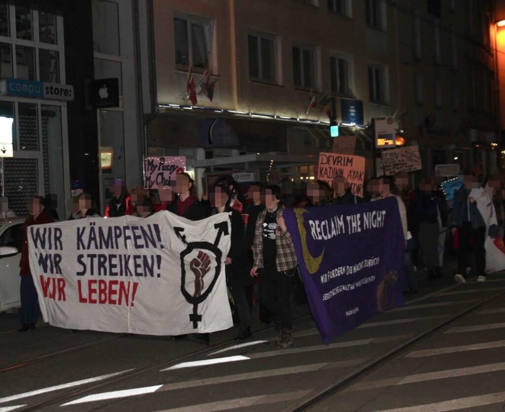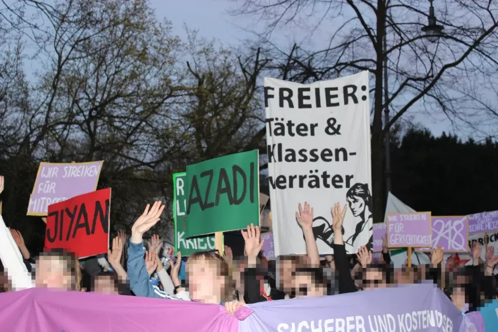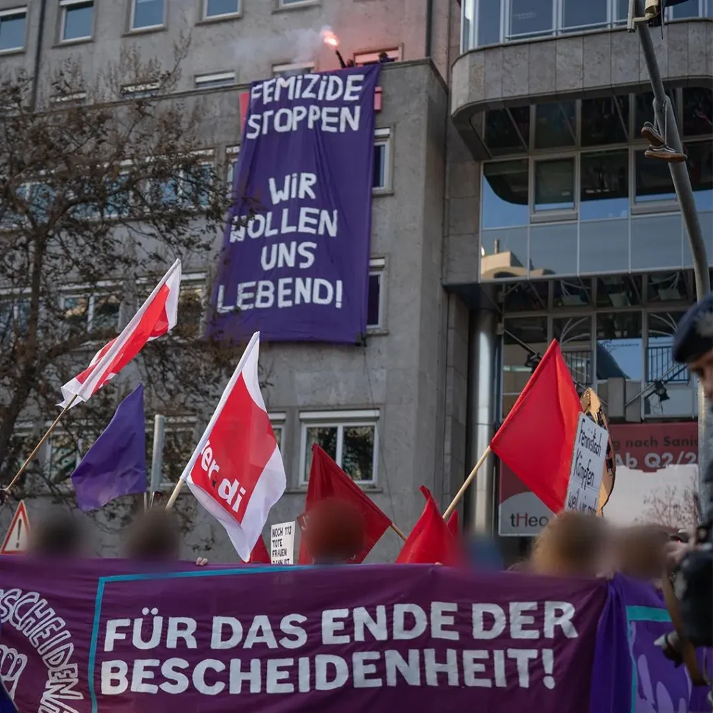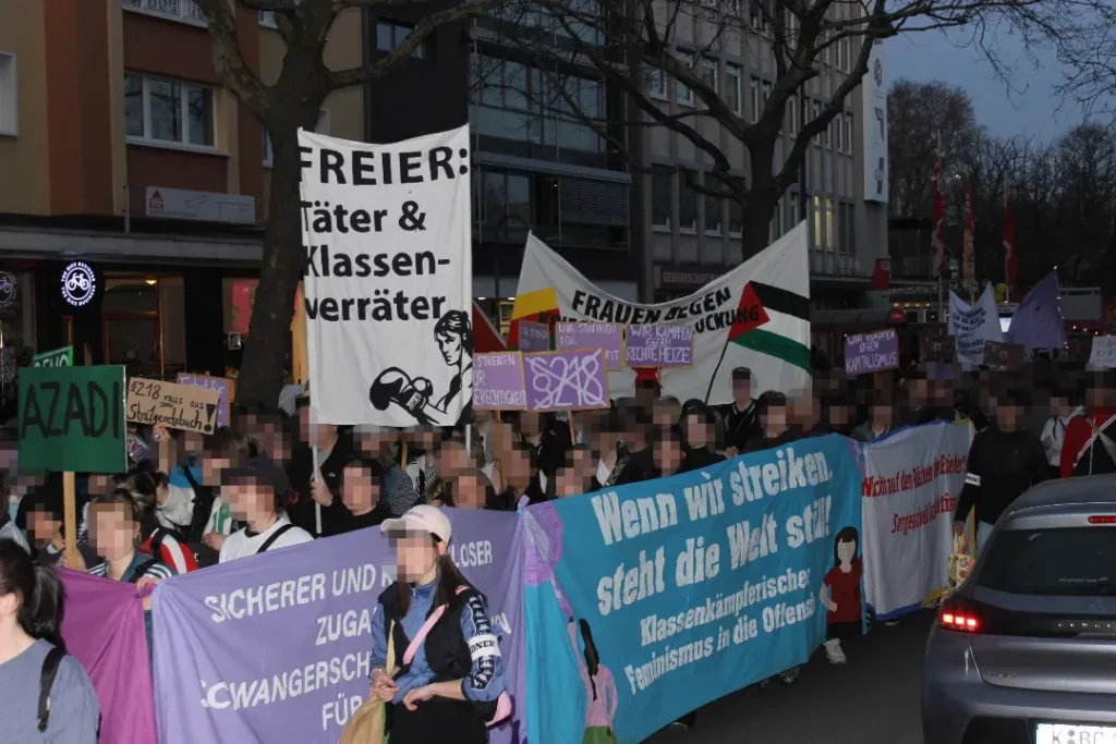 In der bürgerlichen Berichterstattung war davon wenig bis nichts zu finden. Auch die Polizeiknüppel und Angriffe auf die Demos zum Internationalen Frauentag wie in Stuttgart, Berlin … fehlten, wenn überhaupt waren es wenige, „nette“ handzahme Bildchen. Aber sowieso möchten wir hier, an dieser Stelle, unsere Aktionen und Eindrücke von einigen der Demos mit vielen kämpferischen Frauen* und Genoss*innen und auch Genossen teilen: