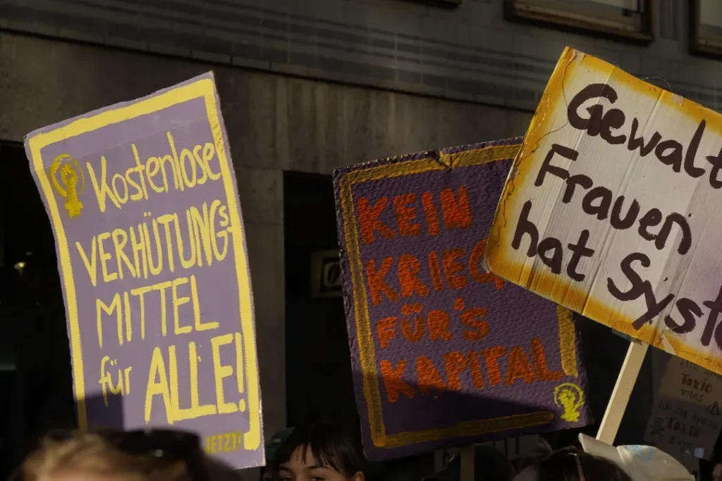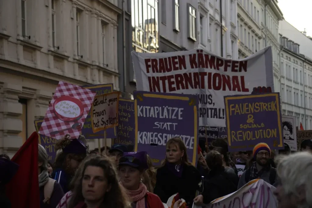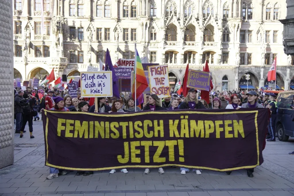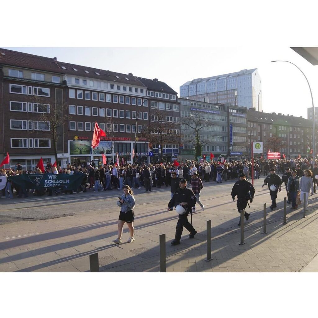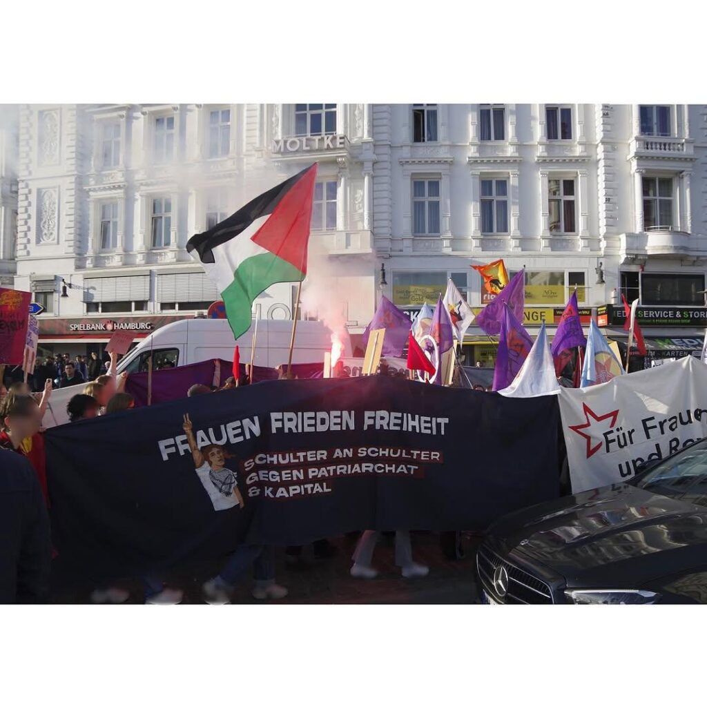 Keine zwei Wochen nachdem rechte, rassistische Hetze den Wahlkampf des gesamten bürgerlichen Parteienspektrums geprägt hatten, den antifeministischen Angriffen von CDU/CSU bis zur AfD, und gleich danach den militaristischen Lügen und der Propaganda nach völlig ungebremster Aufrüstung und Kriegsvorbereitung im Bundestag, in den Medien, waren wir gemeinsam mit tausenden Frauen auf der Straße. Unsere Wut, den Widerstand gegen den Rechtsruck, gegen Sexismus, patriarchale Gewalt, und Unterdrückung, die doppelte Ausbeutung, miese Arbeitsbedingungen und miese Löhne quer durch die Care-Arbeit und den Kriegskurs, haben wir an diesem 8.März gemeinsam auf die Straße getragen.