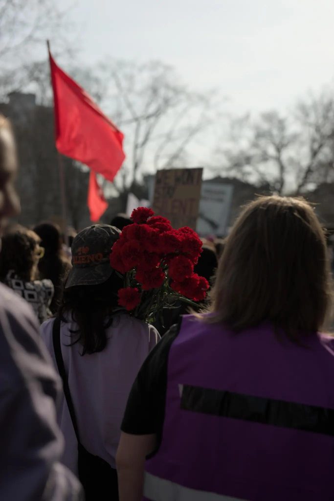 Frauen, Leben, Freiheit. Tausende Frauen waren auf der Straße um zu zeigen: Wir finden uns nicht damit ab in einer imperialistischen, neokolonialistischen Welt zu leben. Wir Frauen kämpfen dafür das die gesellschaftlichen notwendigen, reproduktiven Arbeiten so organisiert sind, dass sie sich tatsächlich am Wohle aller Menschen orientieren und nicht an der Profitgier einiger weniger. Wir fordern eine Daseinsfürsorge, die sich solidarisch und kollektiv nach den Bedürfnissen der Menschen richtet. Wir kämpfen für ein Zusammenleben das auf Solidarität aufbaut und wir kollektiv die Kinderbetreuung, Angehörigenpflege und die Krankenpflege gestalten.